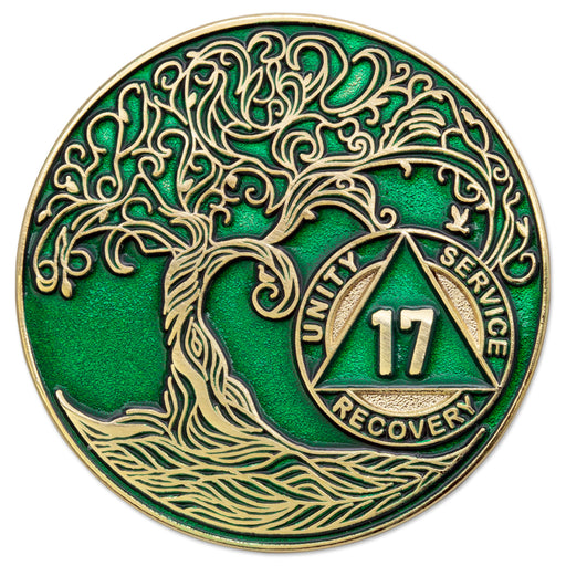 View full details17 Year Tree of Life Specialty AA Recovery Medallion - Tri-Plated Seventeen Year Chip/Coin