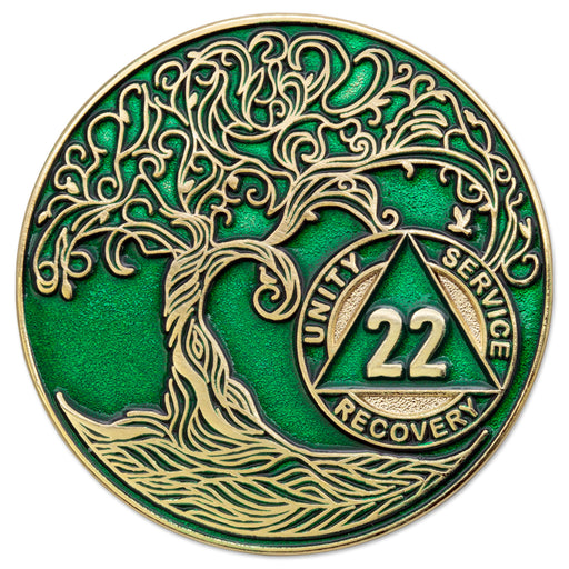 22 Year Tree of Life Specialty AA Recovery Medallion - Tri-Plated Twenty-Two Year Chip/Coin