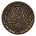Bronze finished and elegantly designed, this keepsake embodies resilience and progress. The front showcases a unique triangle formed by three infinity symbols, symbolizing continuity and balance, along with the words "Unity, Service, Recovery" and the empowering phrase "To Thine Own Self Be True." On the back, you'll find "One Day at a Time" paired with the AA Serenity Prayer, a source of daily strength. Available in a wide range of years/months/days, this coin is a heartfelt way to honor your milestone.