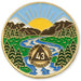 Nature has a special meaning in recovery. It signifies that you will be able to do anything you want on your path to sobriety. The three mountains represent the Three Legacies in AA: Unity, Service, and Recovery. The Sun and the trees represent the life cycle and the process of healing oneself via recovery. The river represents the cleansing that one experiences in sobriety. Let the river lead you on your path to sobriety and you will presently live in a new and wonderful world.