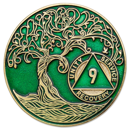 9 Year Tree of Life Specialty AA Recovery Medallion - Tri-Plated Nine Year Chip/Coin