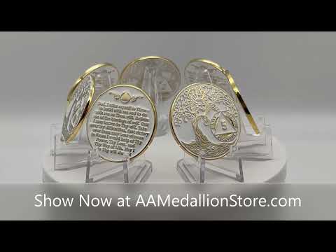 21 Year Sobriety Mint Twisted Tree of Life Gold Plated AA Recovery Medallion - Twenty One Year Chip/Coin - White + Velvet Case