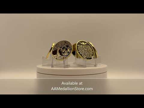 56 Year Sobriety Mint Twisted Tree of Life Gold Plated AA Recovery Medallion - Fifty Six Year Chip/Coin - Black