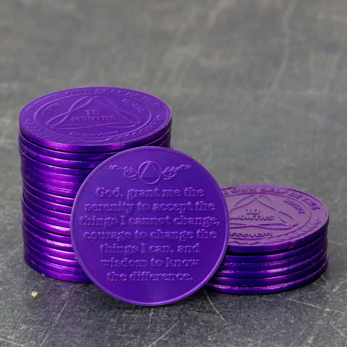 25 Pack of Sobriety Mint Infinity Aluminum AA Meeting Newcomer Sobriety Chips/Coins/Tokens - 10 Months - Purple
